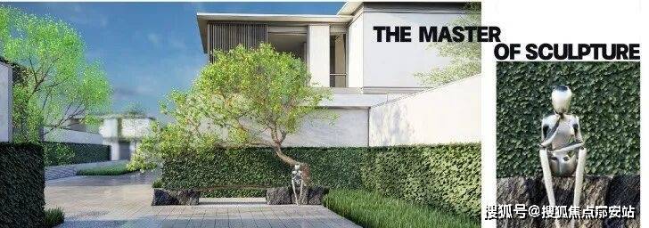 合院的景观设计体现了返璞归真,现代精致的生活本质,并且演绎出前瞻艺术,城市会客的隐贵礼序。将中国古典园林与西方园林取长补短,相得益彰,营造一轴两街三园,四坊十巷的通达之所,并融入现代工艺美术大师精典雕塑作品及名贵树种,安置于阡陌交错间的节点。艺术品装饰社区公共空间,主题阶段性布展式地呈现于业主的面前。横纵阡陌间点缀的艺术品与名贵乔木,宛如星河,异彩纷呈,呈现出自然园林与现代艺术融合的视觉盛宴。