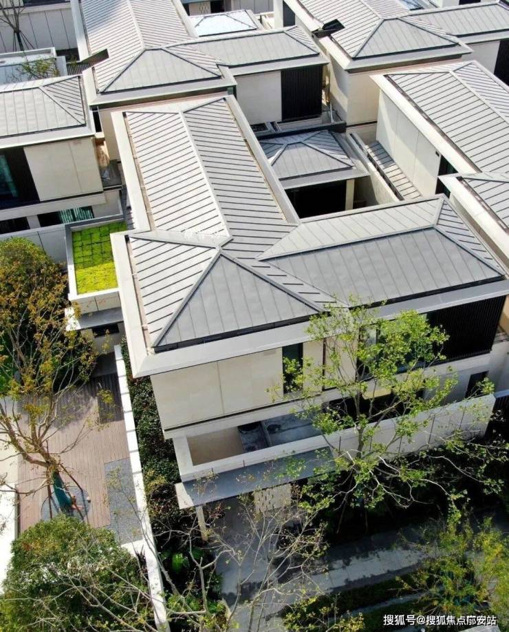 设计师以三面建筑和一面围墙,四合成内聚型的景观空间,庭院居于其中,成为建筑各房间的视线焦点。每户均有80至100平方米的开放式内庭院,宅在院中,宅院合一,天地共生,天人合一。每户地下层面均有3处花园式采光天井,保证了地下空间的舒适通透。