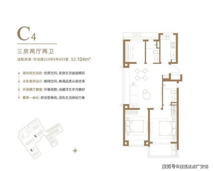 户型设计灵动,目前开放了104㎡3房2厅2卫和103㎡3房2厅2卫样板间,可谓是各有看点:
