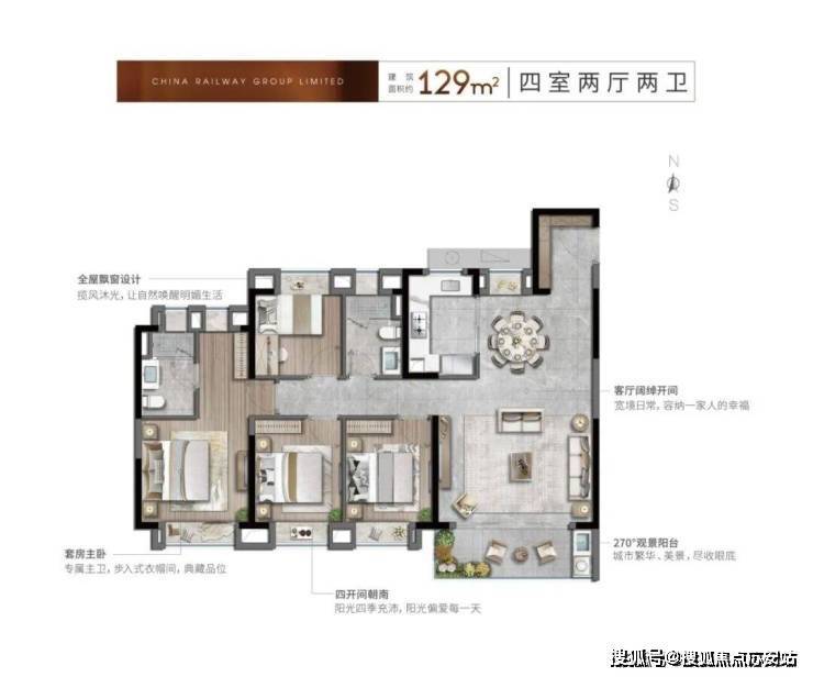 2、全屋6飘窗设计,阳光清风来去自如,多元功能满载生活志趣。270°宽景阳台,宽幕视野尽揽四季风光。