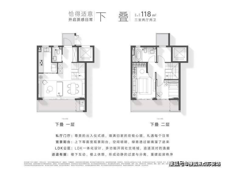 产品户型建面约118-173㎡,下叠及中叠均自带院子,上叠配有阁楼露台,全南向,并且做到了独门、独院、独梯,极尽尊贵。