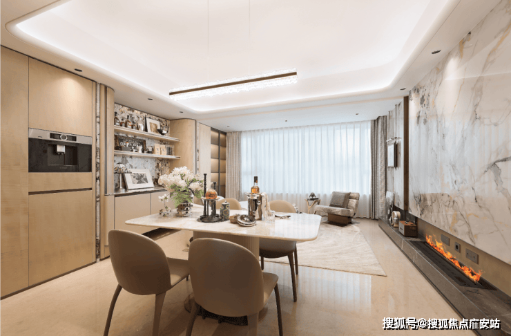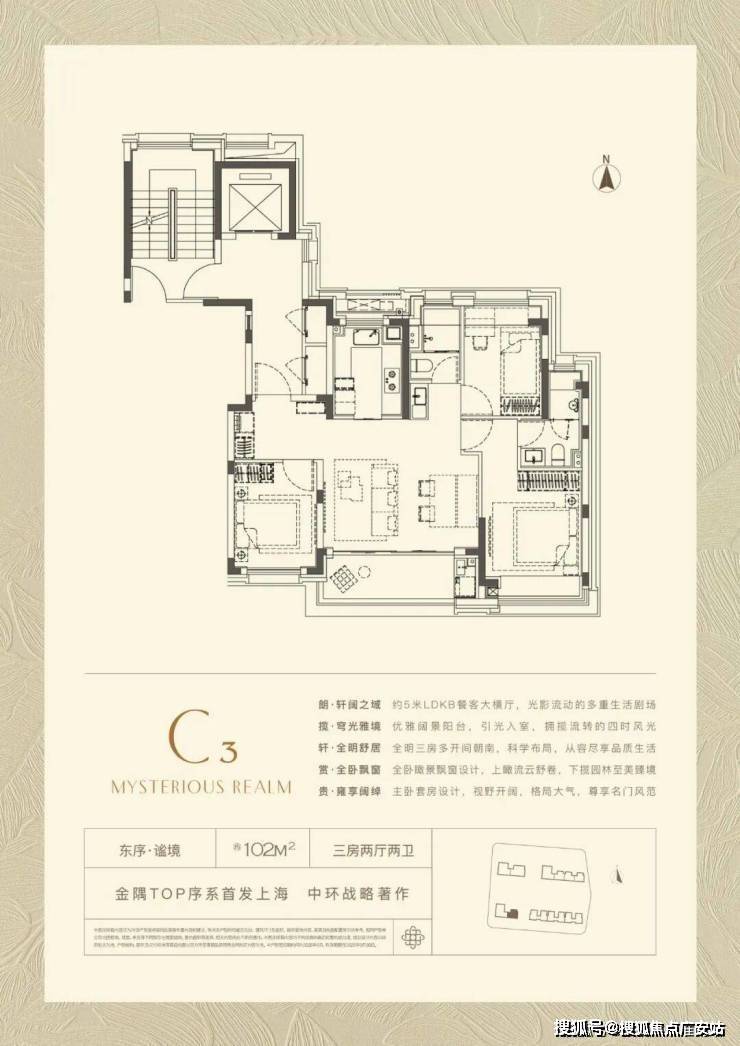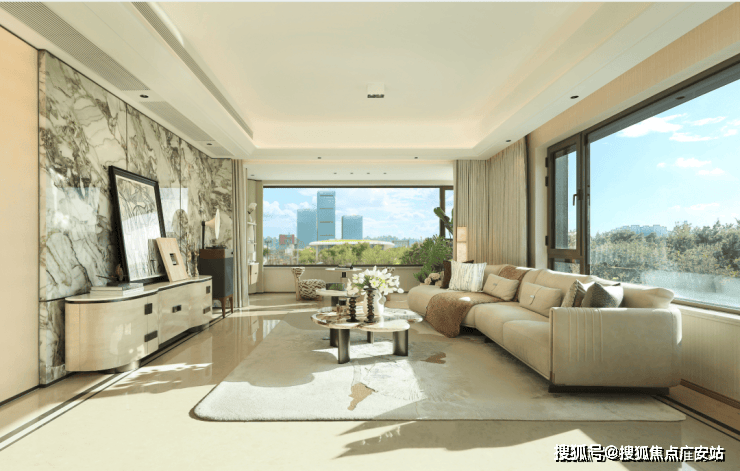【约102㎡样板间】三房两厅两卫格局,同样的布局设计巧思应用于102㎡,打造出近乎双套房的生活体验。5米面宽横厅设计,营造极致通透感,臻选奢石融入空间,优雅时尚。厨房科学动线设计,搭配国际品牌五金和厨电,悦享精致烹饪时刻。星级主卧,独立卫浴,将空间最大程度延伸,打造舒居体验。
