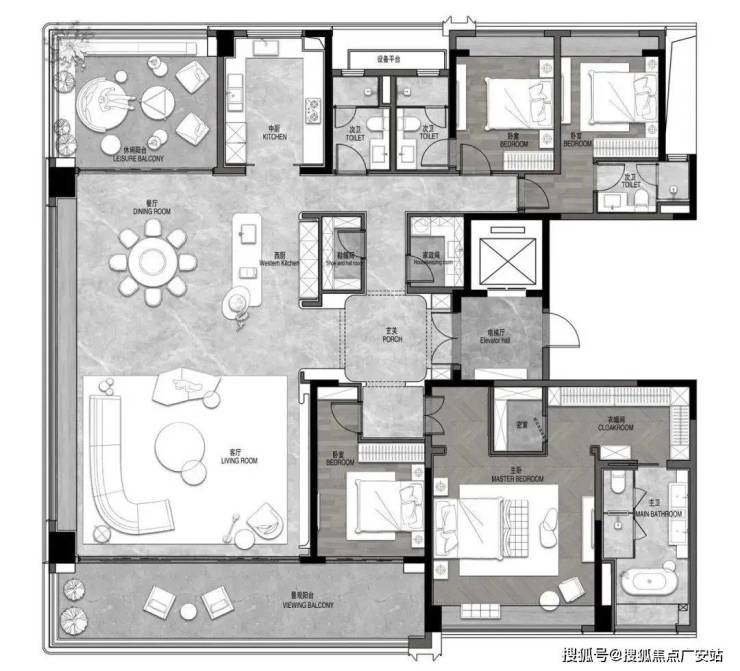 景观团队为曾获得IFLA AAPME、WLA世界景观建筑奖、AMP美国建筑大师奖、美国IDA设计大奖、意大利A Design设计大奖等世界级大奖的佳联景观。而架空层部分还设有私宴厅、健身房、儿童游玩区、书吧,周末剧场,艺术走廊等等公共空间。