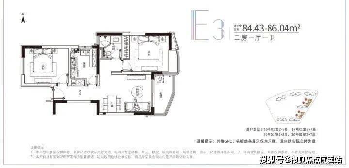 建面约78-91.22平米的小户型,两房两厅一卫的格局,非常适合年轻刚需家庭上车。