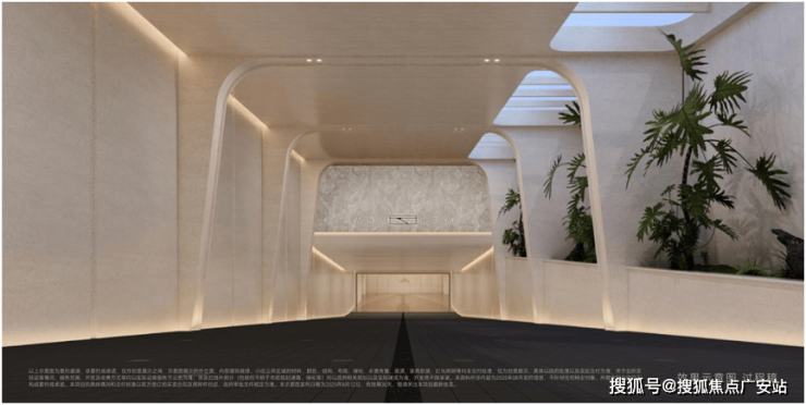 创造惬意的行车观感,阳光地库提供更具温馨与松弛感的归家之旅。下坡道引天光垂照,绿植、柔和片墙及奢石门头、镂空天幕结合,归家即度假的开始。