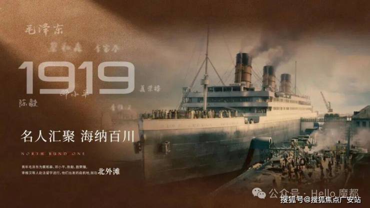 1919年青年毛泽东为蔡和森、邓小平、陈毅、聂荣臻北外滩李维汉等人赴法留学送行,他们出发的启航地,就在北外滩。