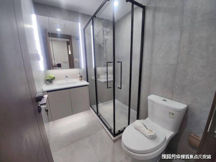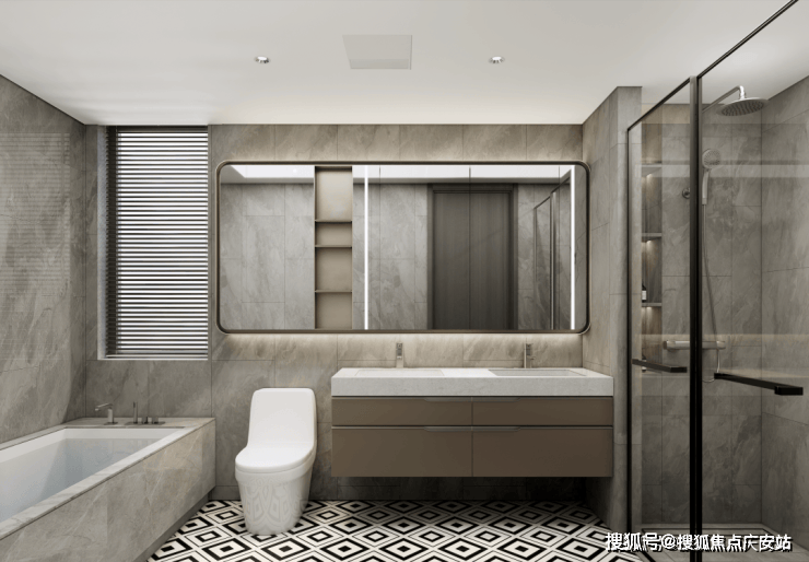 卫生间里的弧形镜、地面拼花、金属复古移门...各个空间都呈现出细节的精致感.