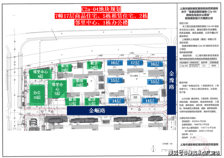 C2a-04地块拟建7幢17层商品住宅、5栋租赁住宅、2栋邻里中心、1栋办公楼。西侧租赁+邻里中心+办公,西侧为住宅部分。