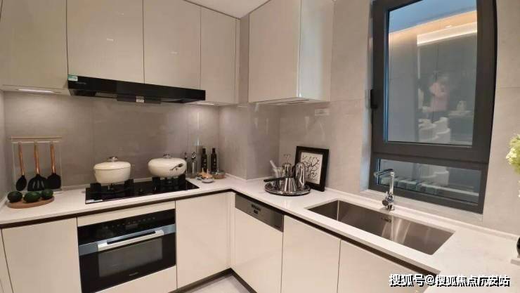 L型厨房,预留了单开门冰箱的位置,飞利浦凉霸,厨具是西门子or博世,洗碗机上了美诺这个级别的。