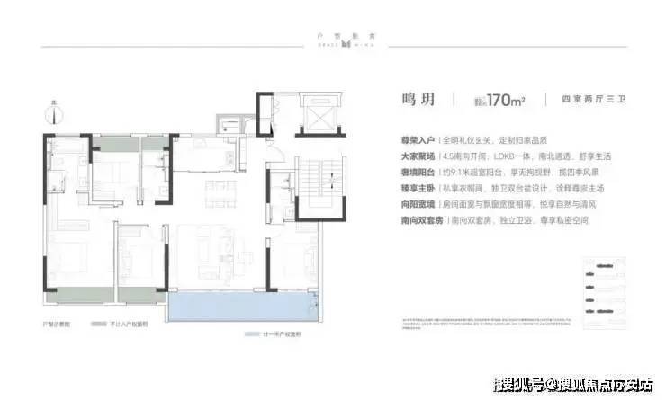 建面约143/170/203㎡户型,四室格局,南北通透;南向大面宽,双联景观阳台,成就郎阔空间尺度,尽揽清风与阳光;独立入户玄关,私密有界;飘窗与房间开间同宽,尽揽阔绰视野;主卧套房设计,独享天地,自成静界。