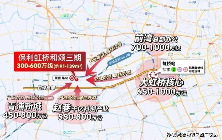 由此可见,示范区线沿线连接着华为、前湾、大虹桥、临空、中山公园、市中心、张江、华泾等一众超强产业区。保利虹桥和颂三期凭借地铁房的优势及价格红利,必将成为这些产业区人才置业的热门之选。