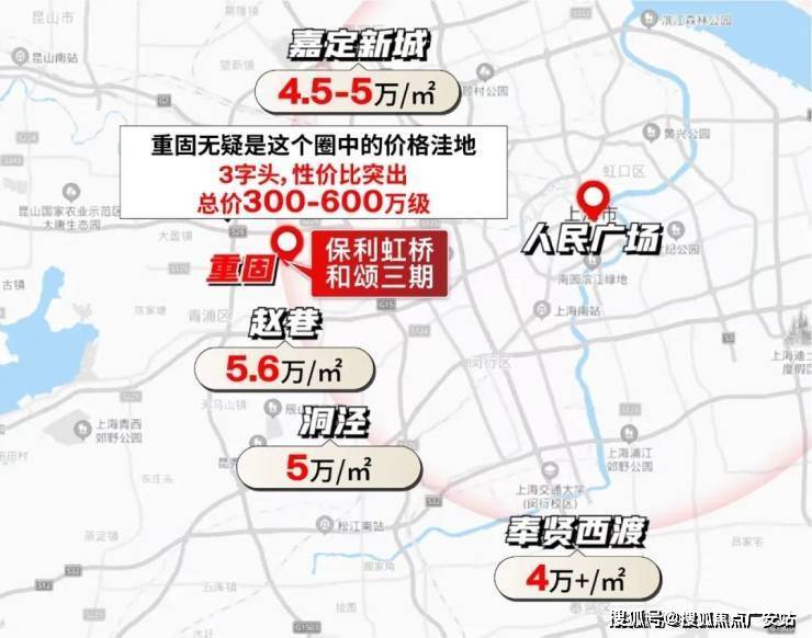 若以市中心为圆心,重固与赵巷、洞泾处于同一半径范围内,但后者房价已达5-5.6万/㎡,而重固仅3字头。