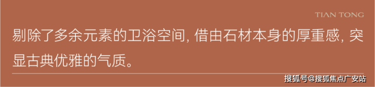 一抹亮色,从素雅的卫浴空间跳脱而出。来自白宫御用品牌Kallista(卡莉斯塔)的龙头套装,专为天潼198项目定制复古陶瓷红,华丽而传统的色泽,呼应着项目的红砖风貌。