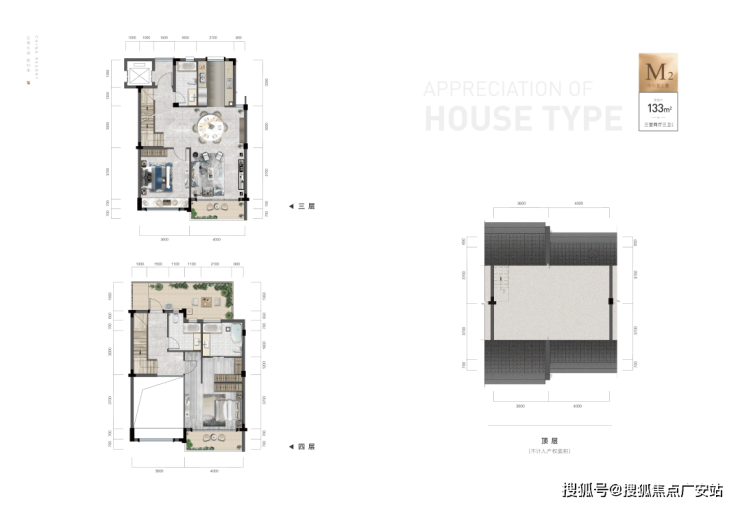 上叠赠送阁楼:以层高超过2.2米的空间部分)计算,最大赠送面积约40㎡