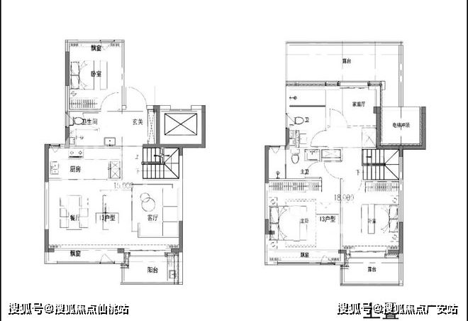高层除140㎡户型为两梯两户以外,其余全部为两梯四户,中间套带连廊!