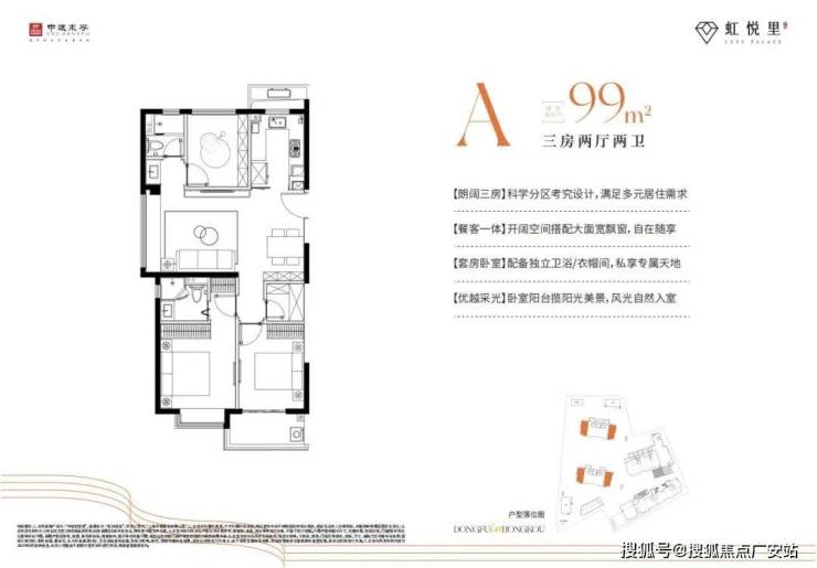 产品方面,中建虹悦里整盘248套房源一次性入市,从建面约79㎡精致2房,到建面约91-99㎡轻奢3房,多元户型总有一个适合你。