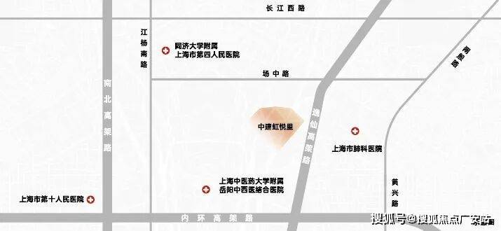 板块内有上海中医药大学附属岳阳医院(三甲)、上海市肺科医院(三甲)、同济大学附属上海市第四人民医院(二甲)等医疗资源。
