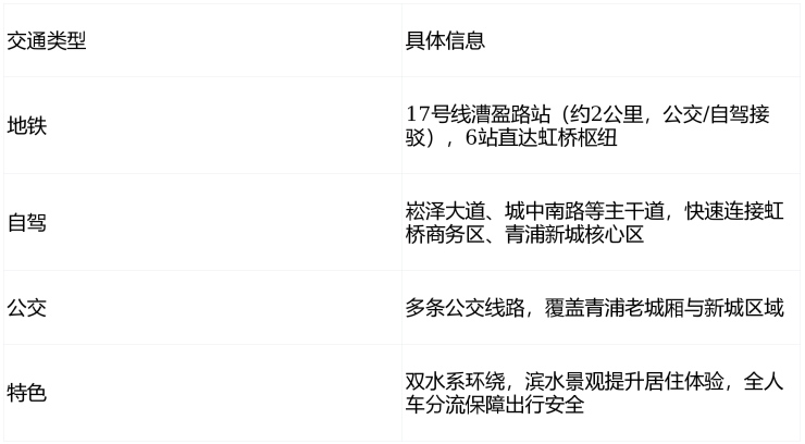 🚇地铁距离稍远:距17号线漕盈路站约2公里,步行需20-25分钟,依赖自驾或公交接驳,地铁通勤便利性一般。