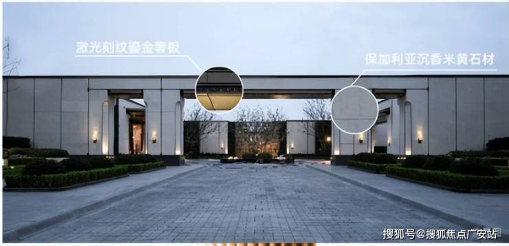 高6m、宽约50m阔尺归家门庭。精选保加利亚沉香米黄石材,搭配激光刻纹鎏金奢板,隐贵门庭。