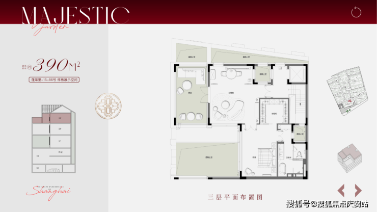 【士林润园】产品打造的是面积段约210-500㎡合院别墅,附赠面积有内外庭院、阳台、露台、地下室两层,实际使用面积很大,总价预约7000万到1.65亿。