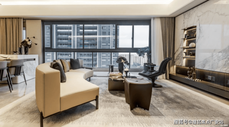 The large-area glass curtain wall design, combined with LOW-E double insulating glass, aluminum alloy lines and metal grilles, creates an extremely high horizontal facade, shaping the image of a luxury residence.