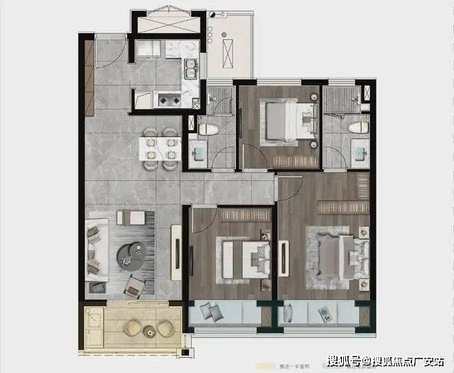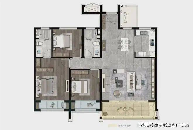 主卧大套房:双卧室面宽超3米,主卧大套房设计,尊贵感十足。