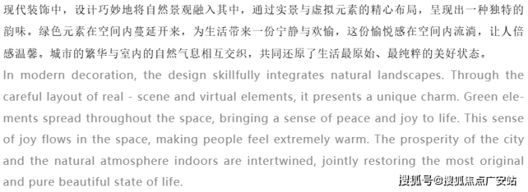 从传统中式榫卯演变而来的现代建筑构件,陈列在幕墙两侧,保留古典元素的同时,沿着文化的脉络,让东方人文雅韵在此轻盈绽放。初晓之光穿越建筑与生机树木,弥留下冲淡的况味,让人内心变得素净与丰盈。所有的情感体验尽在示范区转译为时光记忆,镌刻生命的认知,生活的感悟,自然的哲思。