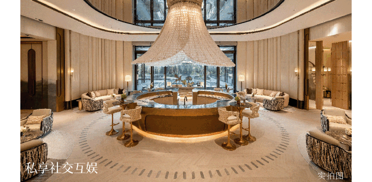 迎合商务洽谈的会客厅、融合宴请与品茗功能的私宴厅、满足家庭邻里娱乐的棋牌室,充分承载聚餐会晤、休闲等多元社交需求。