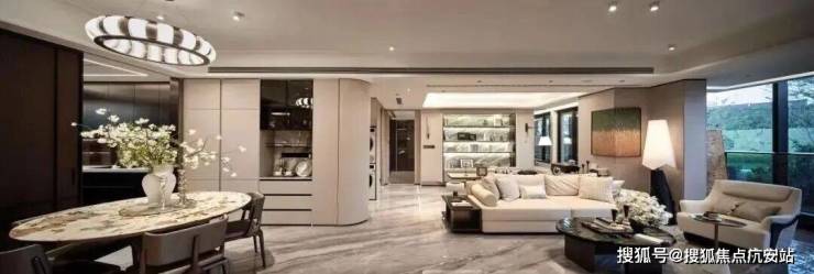 室内空间:引入了全屋智能家居系统,能通过App、中控、语音三大方式,调节全屋智能家居,包括客厅灯光、空调、地暖、新风、客厅和主卧窗帘等场景。