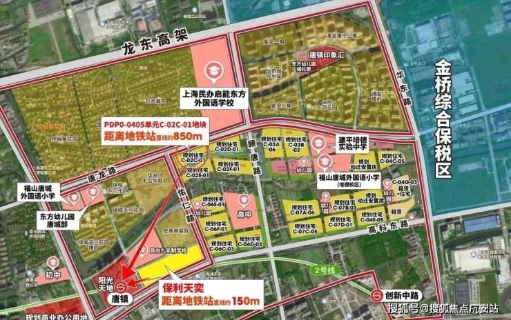 这幅唐镇地王,能引起保利、中海、华润、金茂、招商等头部房企的争夺之战,一大原因就在于它处在整个唐镇更好的位置,地铁、商业、公园、教育、医疗全部是区域顶配。