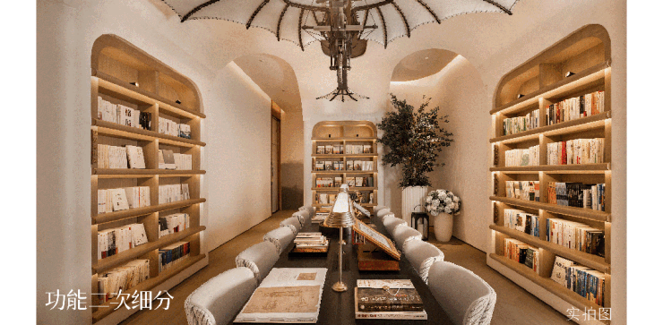 考量不同业主的阅读习惯,将阅读室分为公共阅读区与独立自习空间,为业主带来更纯粹与静学的书局氛围。同时还空见引人了弥散氧设备,可快速提升空气含氧量,创造森林般阅读体验。
