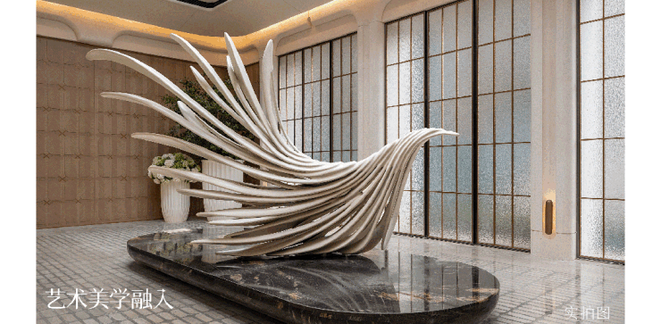 用艺术的视角升华空间的新奢体验,“鲲鹏破空“羽化万象”等艺术装置,让业主走进奕CLUB,犹如沉浸一场美术馆之旅。