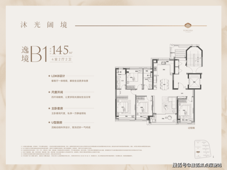 建面约145㎡四房两卫:共143套,四开间朝南,南北通透,全明户型