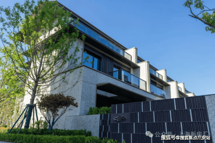 联排建筑立面上进口金钻麻石-全石材铺装搭配咖色的铝板装饰线条,不同凡响的精奢感和厚重的质感,卓尔不群,放眼整个松江,难觅雷同。