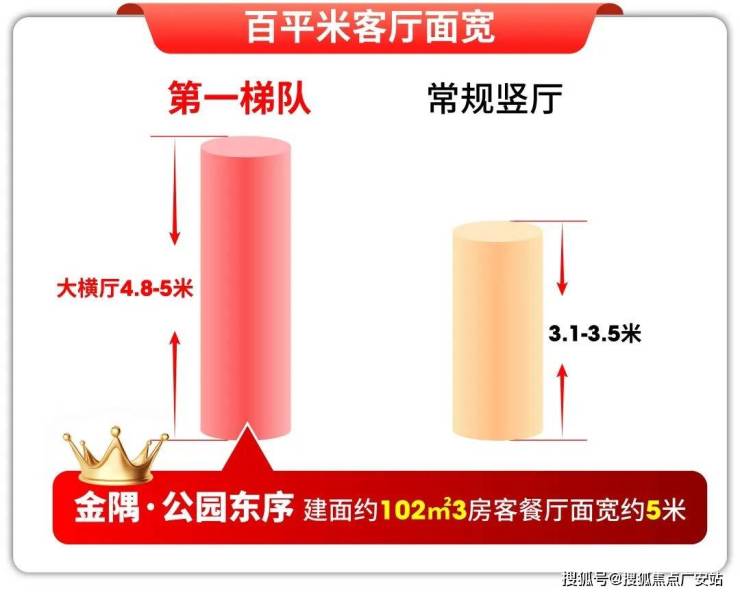 金隅·公园东序建面约102㎡3房,直接做到约5米横厅客餐厅,在市面98–102㎡面积段里,稳居第一梯队。
