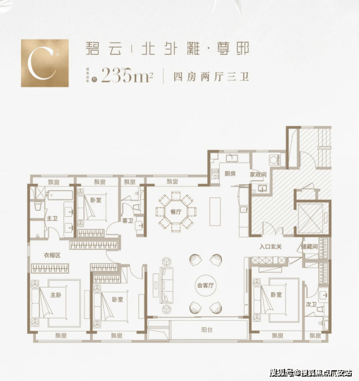 那么实际居住体验如何,我们可以参考已开放的建面约235㎡样板间: