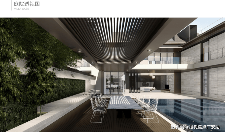 泳池里两旁的庭院,可以与亲朋好友相聚。