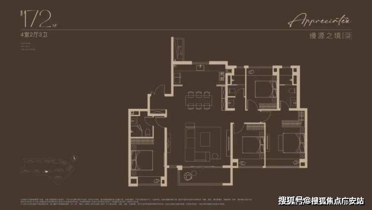 172-198㎡ 4 房大平层:双套房 + 中西双厨,楼王户型