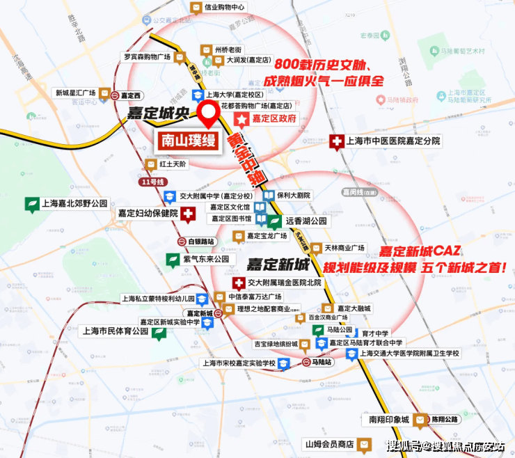 11号线嘉定西站直线距离约2.4km,嘉闵线嘉戬公路站(在建中,具体以政府规划为准)直线距离约2.5km。双线轨交,高效通勤往来,一线直抵真如、徐家汇、前滩等CBD商圈。车行近享上海绕城、沪嘉高速、嘉闵高架及沪宜公路、沪翔高速等纵横路网,畅享虹桥枢纽及国家会展中心。