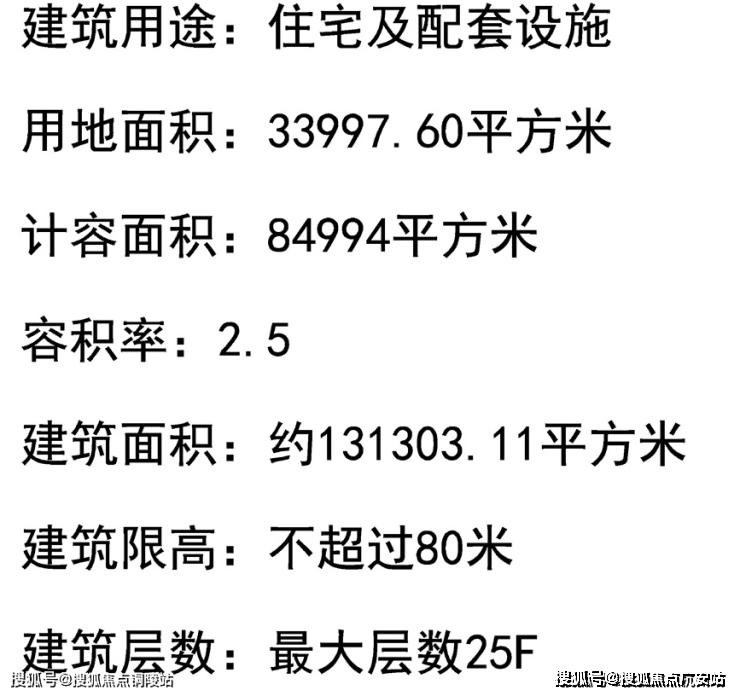 地块用地性质为普通商品房,容积率约2.5,限高80米,住宅套数下限867套,需配建5%以上保障性住房,中小套户型不得低于70%,全装修比例100%!