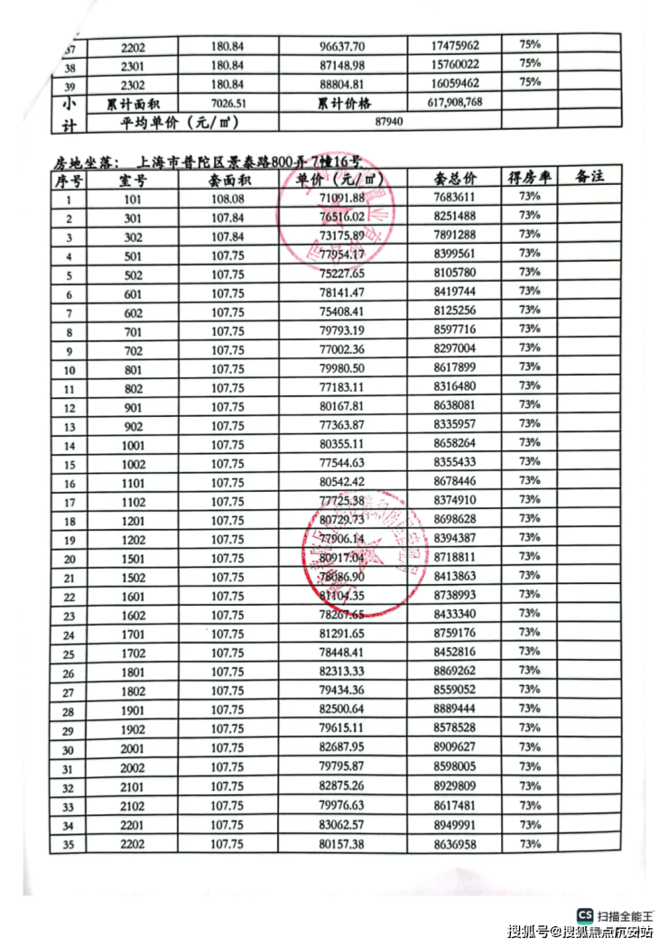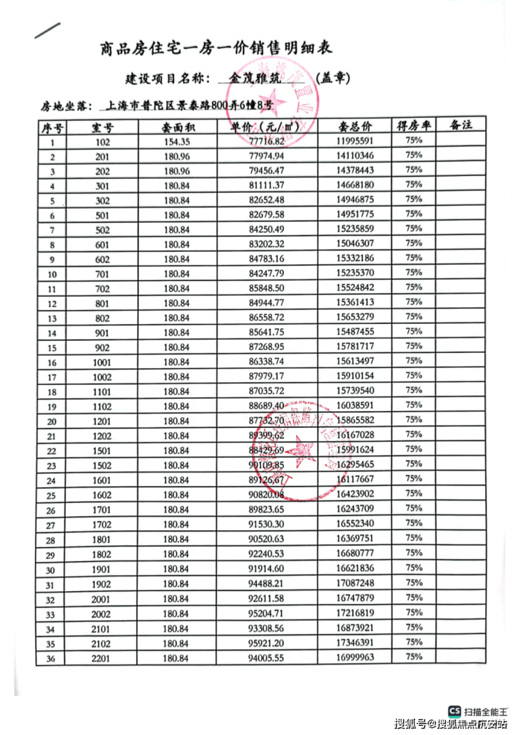 一房一价表: