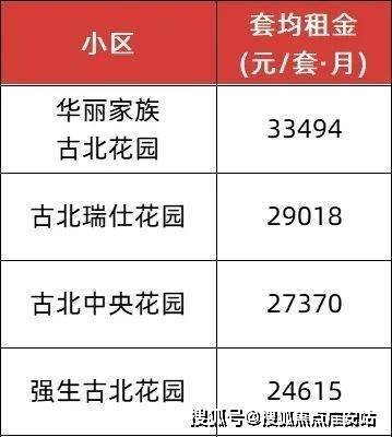 从中指研究院数据来看,古北租金前十楼盘的套均月租金,都超过2万,来看典型楼盘:
