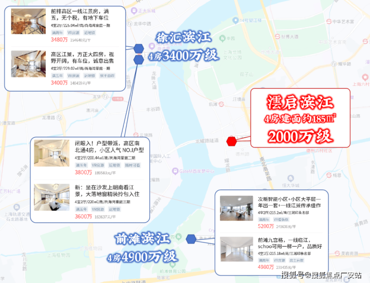 对岸徐汇滨江4房面积稍小的,价格也是3400万级起步。