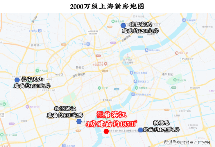 要么就得舍弃面积买小户型,比如瑞虹建面约128㎡、或徐汇滨江建面约100㎡2房且无法看江。