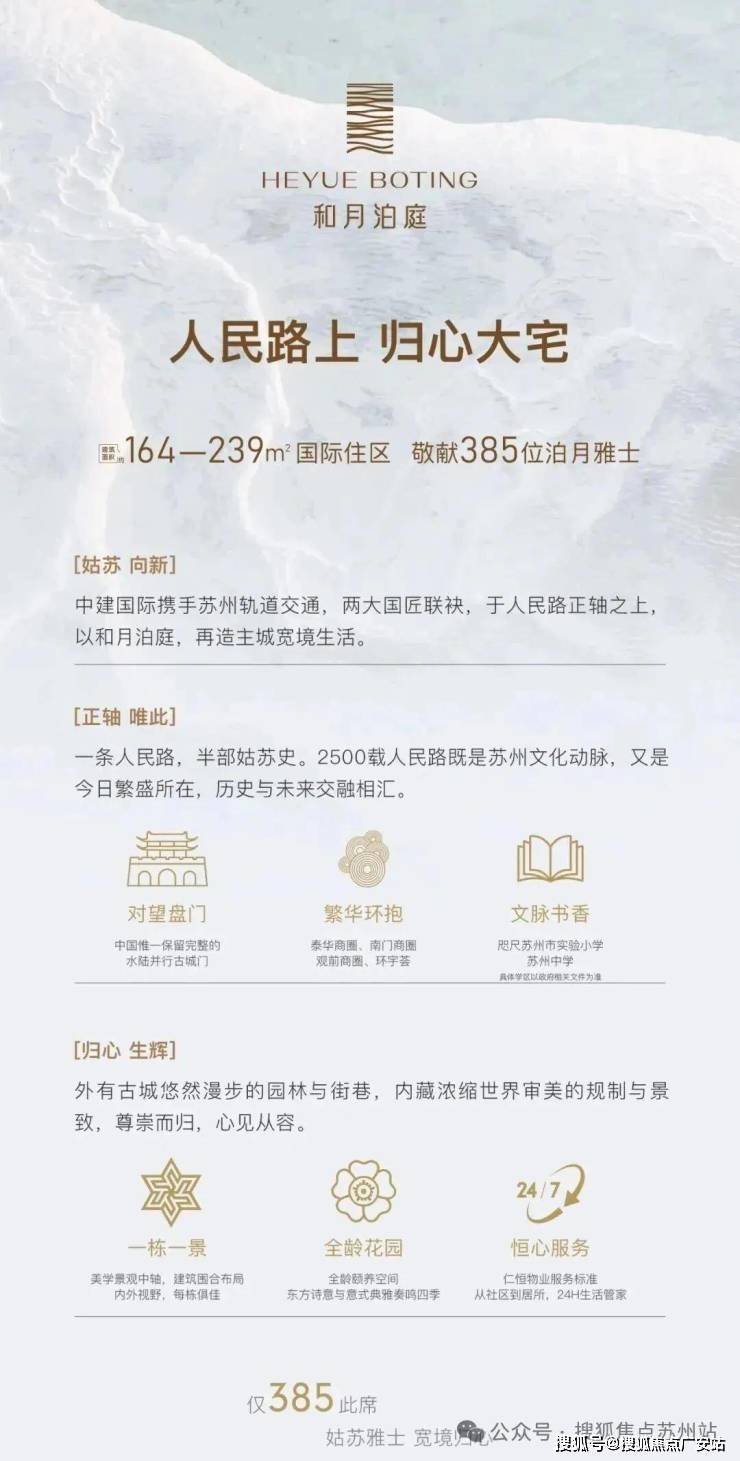 见过世界的繁华,更懂姑苏的静谧珍贵。在姑苏区土地资源日益稀缺的当下,和月泊庭以“3年仅一盘”的稀缺性,成为高净值人群的“身份标签”。业主名单里有执着于姑苏情怀的收藏家,有追求效率的金融菁英,也有注重家族传承的实业家——他们的共同选择,源自对“隐形价值”的默契认知。