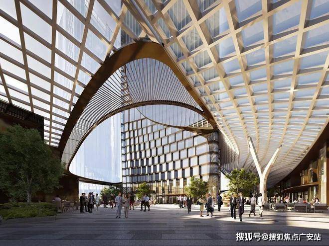 不同于传统的、以商业为主的高密度综合体,UNStudio重新定义城市综合空间,引入各式裙楼、极具活力和公共性的开放空间,创造了一个大尺度的“城市客厅”,并在其顶部增添了4座综合功能的塔楼。