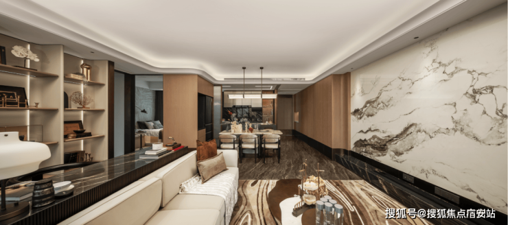 翎翠滨江通过大量的奢石、隐藏式细节将整个室内打造成了艺术的殿堂。