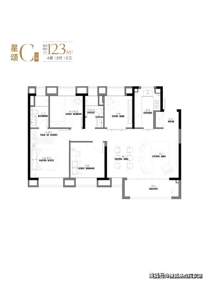 另外,四房+六飘窗+宽面阳台的设计,让整个空间更具延展性。