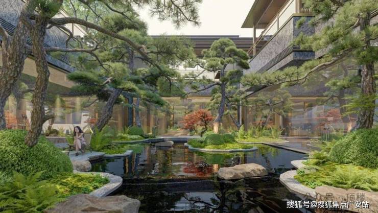 8大景观节点:营造可行、可观、可游、可居的东方诗意天地。①松石客堂-主入口;②松桕悬流-下沉庭院;③沐阳栖闲-后场庭院;④吟赏春灼-景观主轴;⑤丹金映岁-院巷花园;⑥晚枫流霞-院巷花园;⑦林屿夕照-邻里花园;⑧春山浮光-次入口