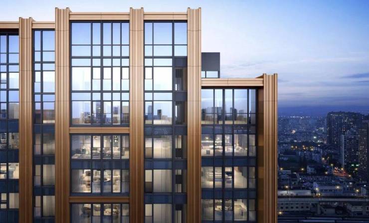 超高层住宅部分由天华建筑事务所设计打造,参考曼哈顿玫瑰峯汇Rosehill的建筑立面,现代简约线条搭配复古的色调形成简约高奢的风格,历久弥新。